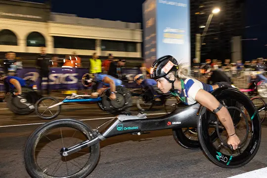 NOTE: Hand-cycles or Day Chairs are NOT permitted. The 2026 Wheelchair 10km is run under Athletics Australia, World Para Athletics and World Athletics rules which state that this is an athletics event and only a recognised racing wheelchair is permitted. No mechanical gears are permitted on the chair.